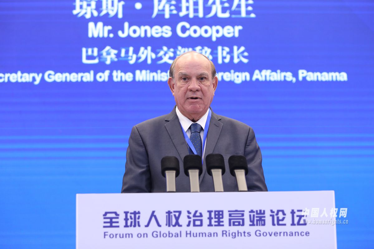 6月14日-15日,全球人权治理高端论坛在北京举办。图为巴拿马外交部秘书长琼斯·库珀作大会发言。摄影:栾海军
