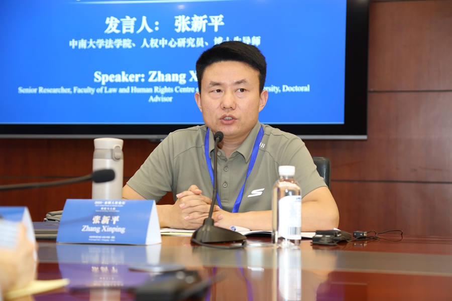 图为中南大学法学院、人权中心研究员、博士生导师张新平作题为《数智时代的数据可携带权研究》的发言。图片来源:西南政法大学人权研究院