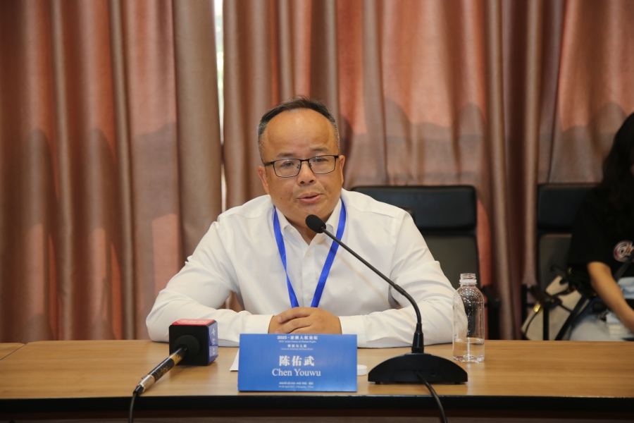 图为广东工业大学法学院院长,广东工业大学人权法治研究中心执行主任、教授陈佑武作题为《科技向善是切实尊重和保障人权的时代要求》的发言。图片来源:西南政法大学人权研究院