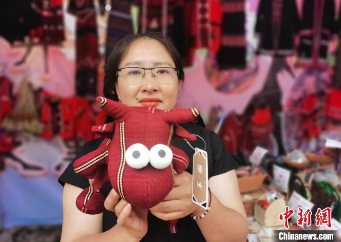 4月29日,商家展示佤族织锦工艺品。黄兴鸿 摄