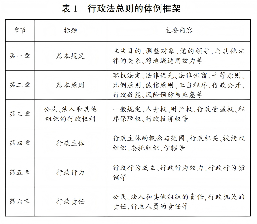 行政法总则是行政法的“纲”,其他行政法律规范是行政法的“目”。唯有纲举,方能目张。一方面,行政法总则在内容定位上应当具有通用性和重要性。所谓通用性,是指行政法总则的内容应对行政法分则、部门行政法等全部行政法律规范具有普遍适用性;所谓重要性,是指行政法总则应规定行政法中最重要的原则和制度。另一方面,基于规范行政活动、保障公民、法人和其他组织合法权益的基本功能,行政法总则应当以规范行政活动为逻辑主线,围绕基本原则、行政权利、行政主体、行政行为、行政责任等内容展开。据此,可以将行政法总则的内容分为以下部分: