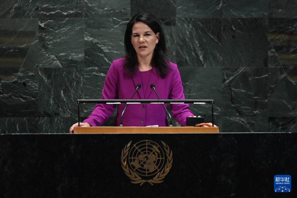 9月23日,在位于纽约的联合国总部,第80届联大主席贝尔伯克(中)主持第80届联合国大会一般性辩论开幕式。新华社记者吴晓凌摄