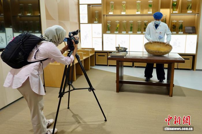 9月24日,来自马来西亚、印度尼西亚、老挝、越南、缅甸以及中国的专家学者、媒体人走进位于浙江的杭州市中医院,体验中医文化和智慧医疗服务。外籍嘉宾拍摄记录手工泛丸过程。中新社记者 刘子琳 摄