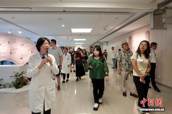 9月24日,来自马来西亚、印度尼西亚、老挝、越南、缅甸以及中国的专家学者、媒体人走进位于浙江的杭州市中医院,体验中医文化和智慧医疗服务。中外嘉宾参观杭州市中医院。中新社记者 刘子琳 摄