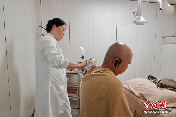 9月24日,来自马来西亚、印度尼西亚、老挝、越南、缅甸以及中国的专家学者、媒体人走进位于浙江的杭州市中医院,体验中医文化和智慧医疗服务。外籍嘉宾体验拔罐。中新社记者 刘子琳 摄