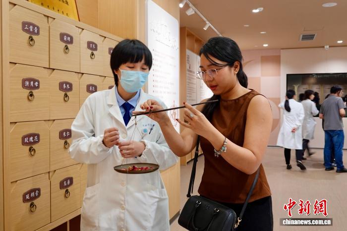 9月24日,来自马来西亚、印度尼西亚、老挝、越南、缅甸以及中国的专家学者、媒体人走进位于浙江的杭州市中医院,体验中医文化和智慧医疗服务。外籍嘉宾学习打包中药材。中新社记者 刘子琳 摄
