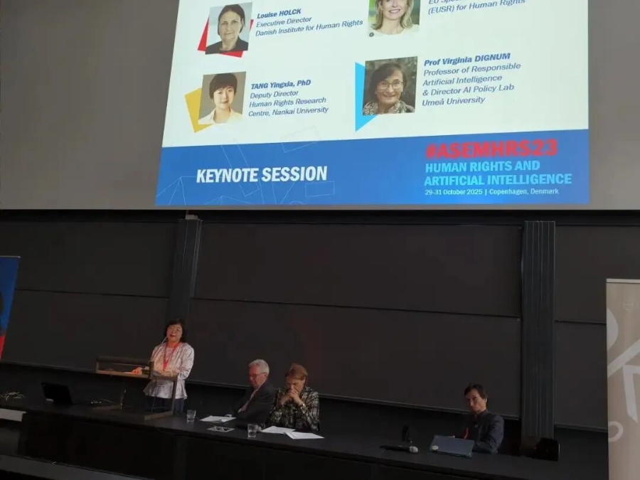2025年10月29-31日,第23届亚欧会议人权非正式研讨会在丹麦哥本哈根大学举行。南开大学人权研究中心副主任、南开大学法学院副教授唐颖侠受邀参加会议并做大会主旨发言。受亚欧基金会委托,唐颖侠副教授与瑞典Umeå大学AI政策实验室Virginia Dignum教授、Rachele Carli博士合作完成了长达83页的会议背景文件《人权与人工智能》,在大会上介绍了亚洲地区人工智能与人权的发展,与来自亚欧各国的参会代表进行了深入的交流。