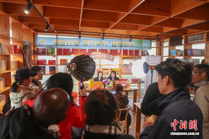 图为中外嘉宾在湖陂村的灵感书屋观摩助农直播。中新社记者 刘力鑫 摄