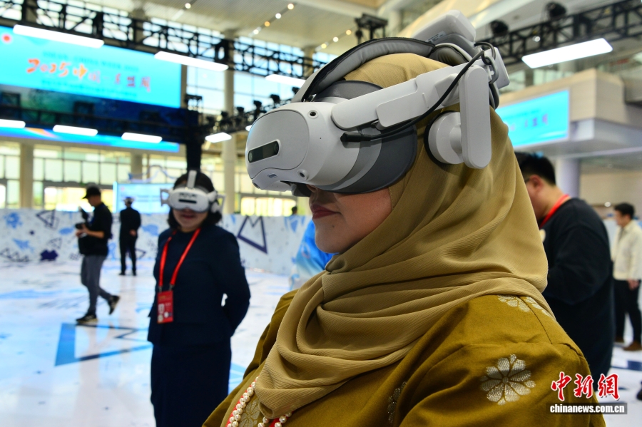 2025年11月17日,2025中国—东盟周在福州开幕。图为出席活动的中外嘉宾在会场体验首批入驻“中国—东盟数字文化IP库”以海洋为主题的VR沉浸展。 中新社记者 张斌 摄