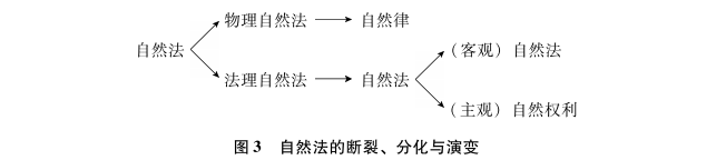 17世纪自然法的断裂、分化与演变可用图3简示: