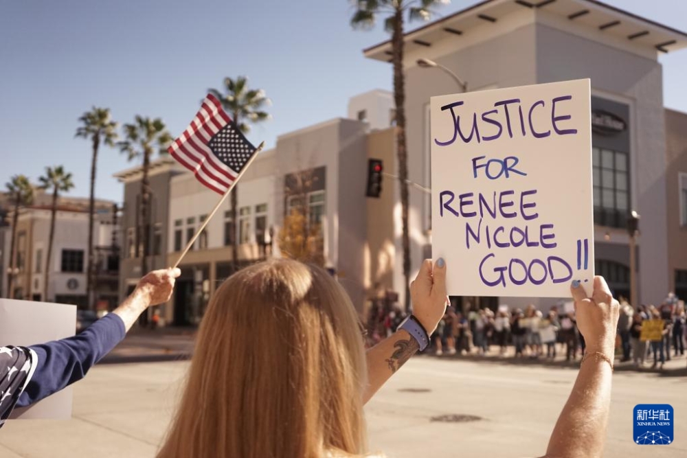 1月10日,人们在美国加利福尼亚州洛杉矶县卡森市参加烛光守夜活动,悼念被美国移民与海关执法局(ICE)执法人员射杀的美国公民蕾恩·妮科尔·古德。新华社发