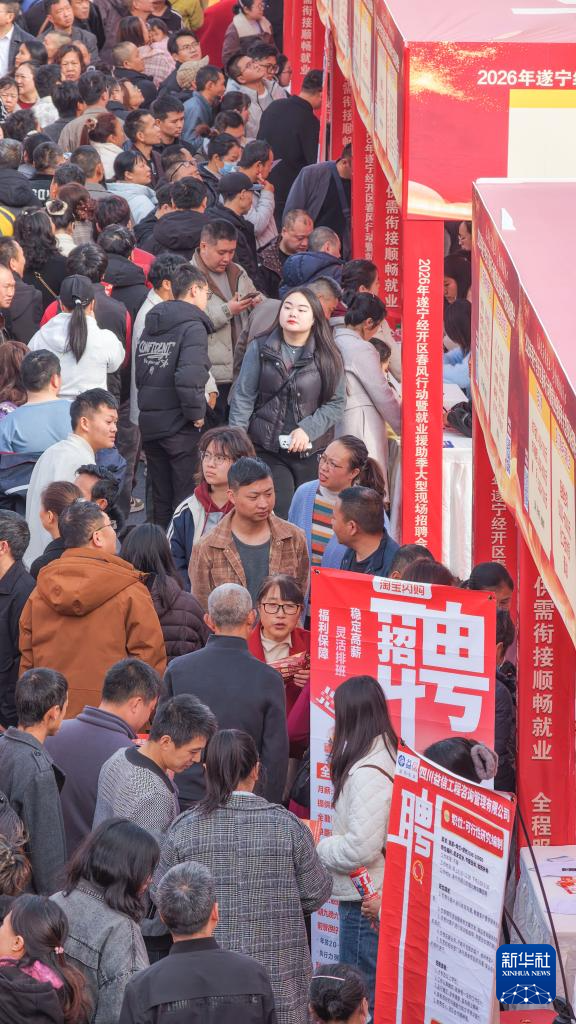 2月24日,求职者在四川省遂宁经开区首场“春风行动”大型招聘会现场浏览岗位信息。新华社发(刘昌松 摄)