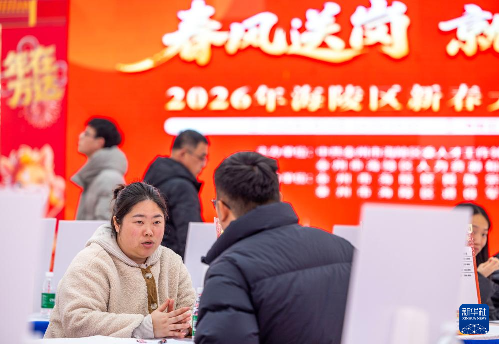 2月24日,在江苏省泰州市海陵区举办的2026年“春风送岗 就在海陵”专场招聘会上,求职者在活动现场咨询。新华社发(汤德宏摄)