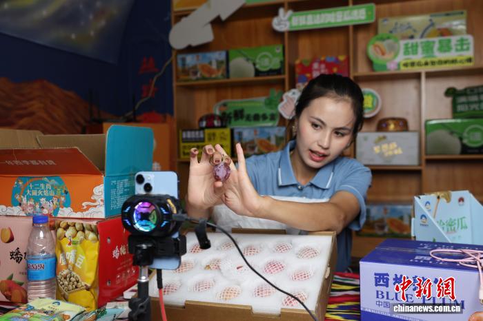 2025年9月10日,位于新疆吐鲁番市高昌区新城西门村的红石榴电商直播孵化基地,电商主播在进行直播。 中新社记者 王紫儒 摄
