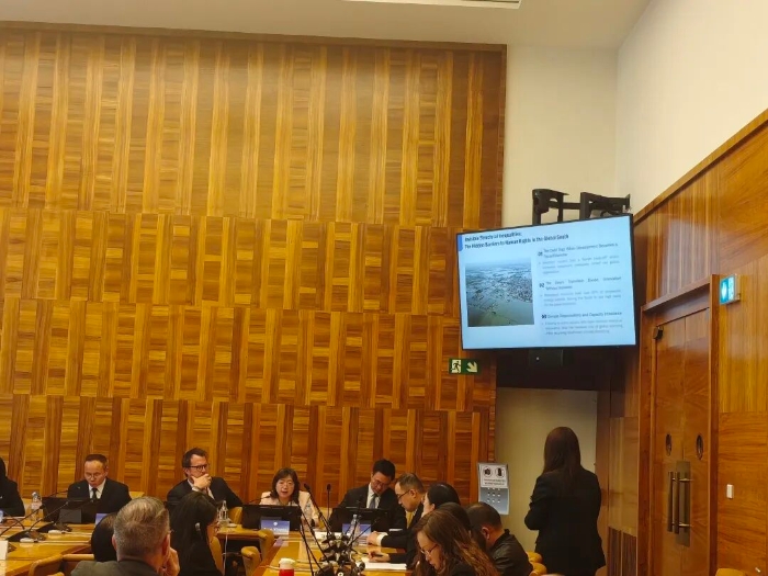 此外,唐颖侠还参加了由联合国人权高专办、环境与人权特别报告员、非政府组织等部门主办的主题为“呼吸清洁空气:保护公共健康和实现健康环境”边会、“关于土著人对环境权的贡献”边会、“气候正义与人权”边会、“冲突、气候变化和新殖民主义时代自然资源的主权与自决权”边会、“公司治理中的人权因素:提高全球供应链中的人权尽责”边会等多场在万国宫内边会,以及在日内瓦大学举办的“危机世界中全球南方视角下的地缘政治、人权与主权”场外边会。旁听了与反恐与人权特别报告员互动对话会、隐私权特别报告员互动对话会、武装冲突中的儿童权利保护、大会一般性辩论等活动。本次出访进一步加深了与联合国人权机制之间的沟通交流和互信合作。