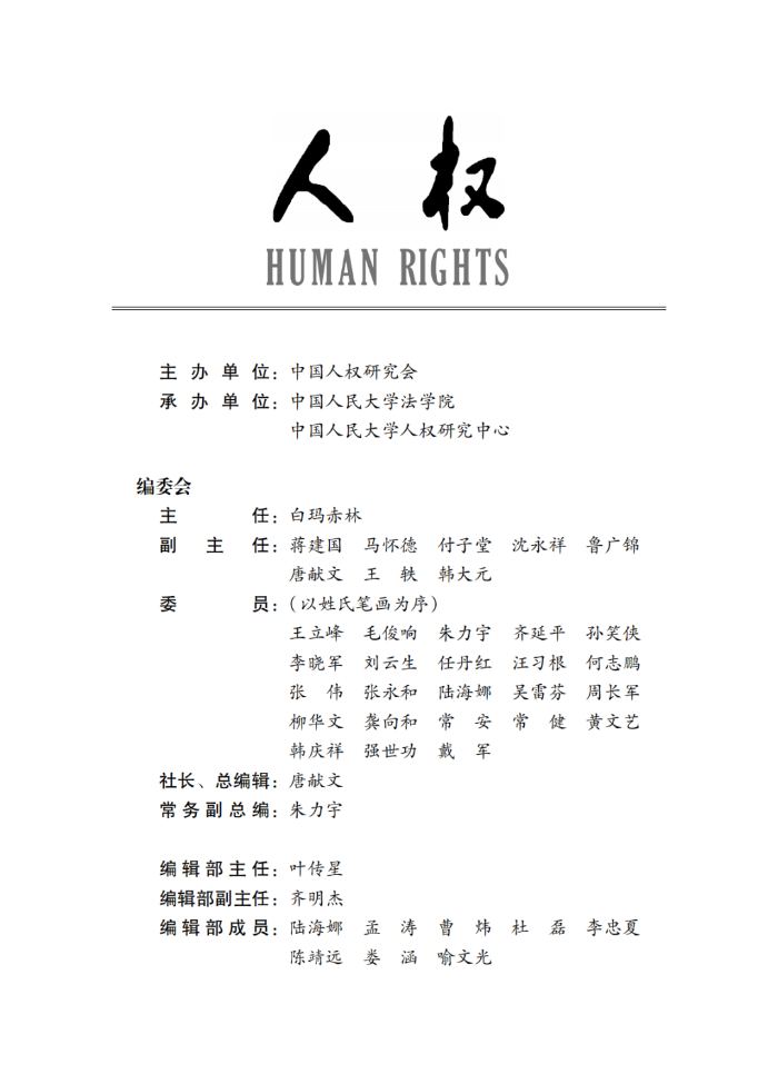 《人权》为双月刊,以中、英两个文种出版,主要发表以人权、权利等为主题的法学、政治学、哲学、经济学、历史学、社会学等人文社科诸领域的论文,热诚欢迎学界同仁投稿。